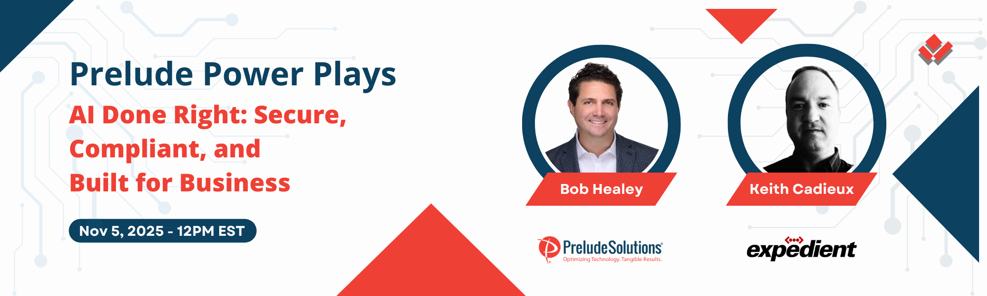 AI Done Right: Secure, Compliant, and Built for Business Hosted by Prelude Solutions & Expedient Why Attend AI is transforming the way we work, but without the right approach, it can put sensitive data and compliance at risk. This session will show you how to unlock productivity for every user while protecting your business. You’ll learn how to build a secure AI assistant (like ChatGPT) tailored to your organization, understand the pitfalls of public AI tools, and explore strategies to turn AI into a driver of security, revenue, and culture. Key Takeaways